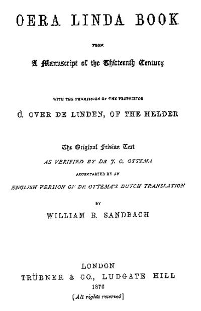 Theopening lines of the Oera Linda Book are by Hiddo Over de Linda. He was the last to copy it in the year 1256 AD. His only additional contribution is this opening letter in which he entreats his descendants to keep the book safe so that it may never be lost. Very significantly, he dates all the older times by referring them to the number of years since the submergence of Atland, the Old Land or the original home of these pre-Christian Europeans. The date is given as 3449 less 1256 or 2193 BC and marks the beginning of the continental post submergence calendar that is referred to several times in the Oera Linda Book. Here we have the tone of the Book set in the first letter; protection from power sources that cannot tolerate free expression and the gift of exciting historical facts. That original date is even confirmed again from a different source as we read on.